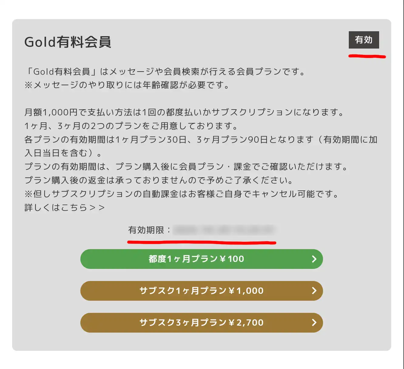 決済が成功すると会員の有効期限が表示(更新)され「無効」の場合は「有効」に変わる。