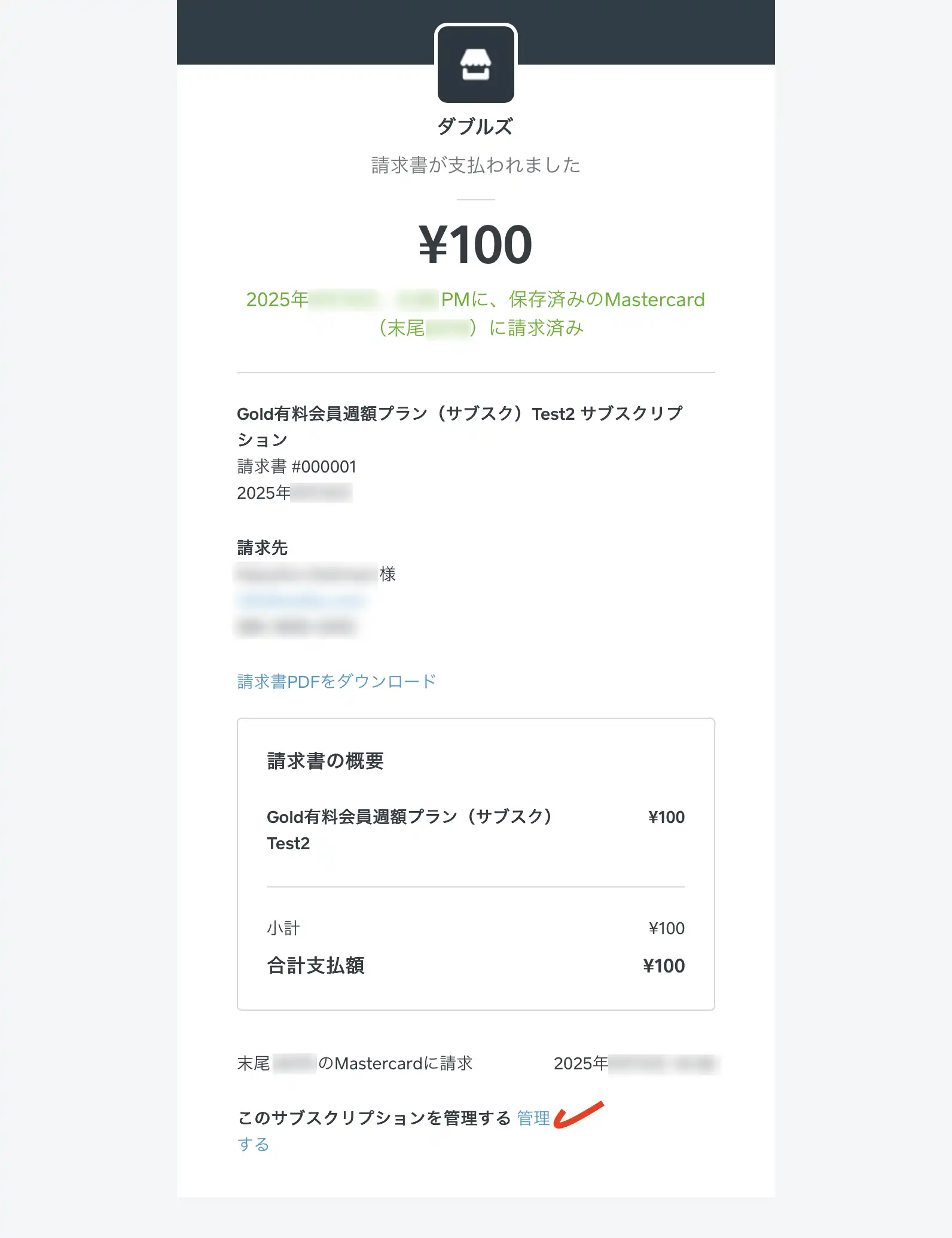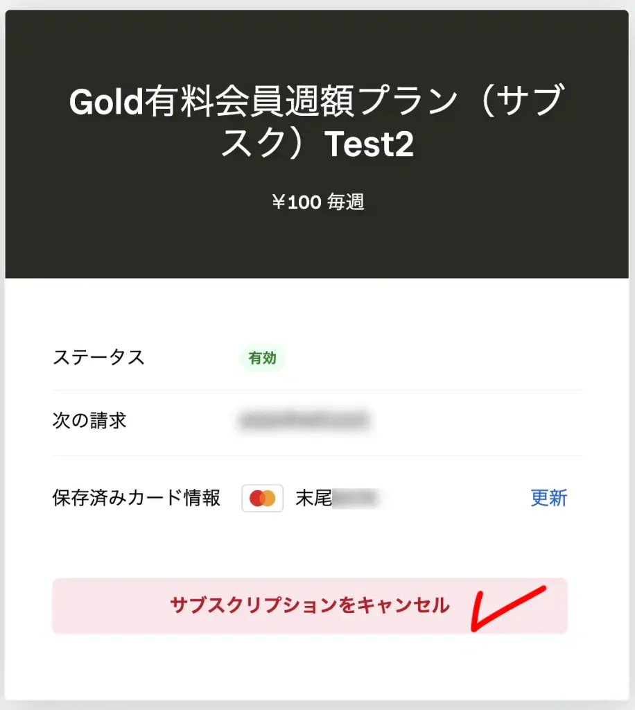 決済後に届いたメールからいつでもサブスクをキャンセル出来る。